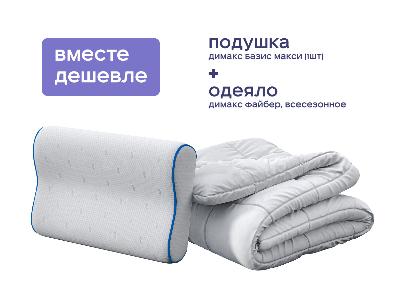 Комплект одеяло Димакс Файбер всесезонное + подушка Базис Макси 1 шт. – уют и комфорт круглый год! Хотите улучшить качество сна и создать идеальную атмосферу для отдыха? Этот набор — ваше решение. Объединив универсальное одеяло и анатомическую подушку, вы поучите тепло и комфорт в любое время года. При этом вы экономите до 46% по сравнению с раздельной покупкой, получая два продукта в одном выгодном предложении.