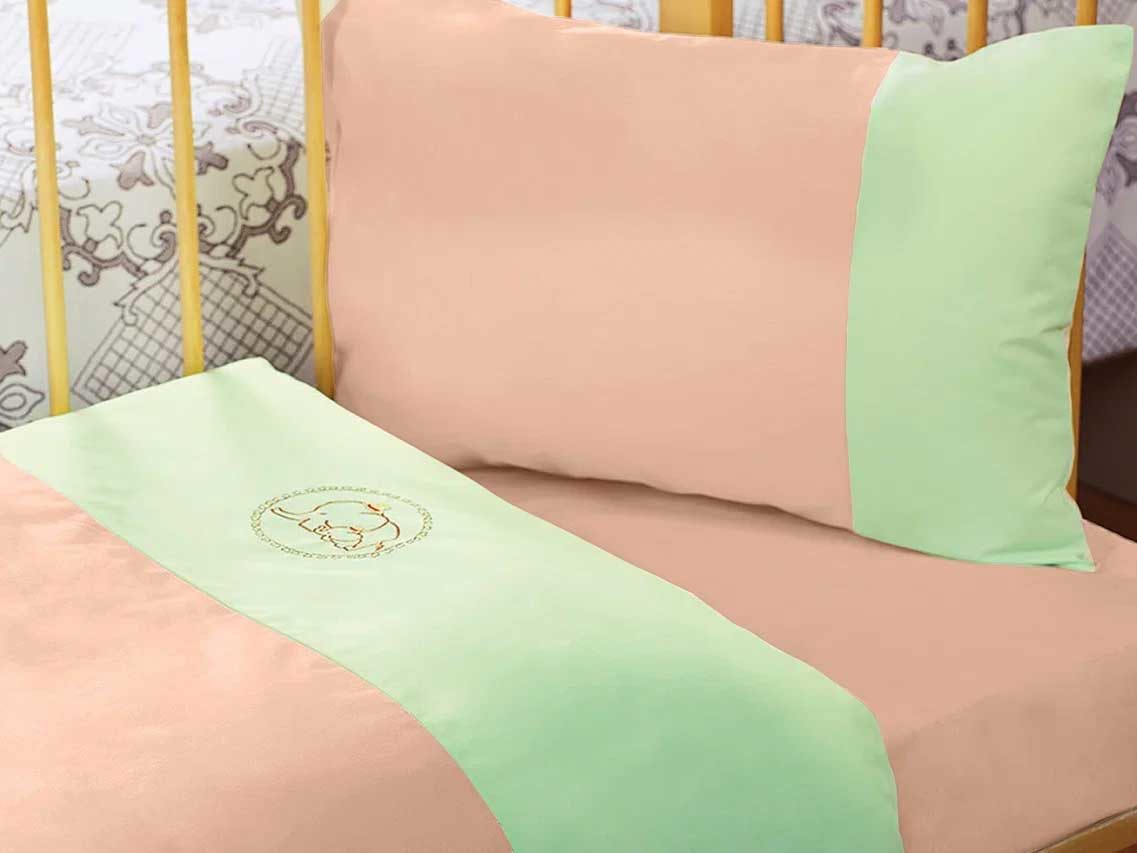 Постельное белье Felia комбинированной перкали двух цветов и милой вышивкой "Слоник" порадует ребенка и его родителей.