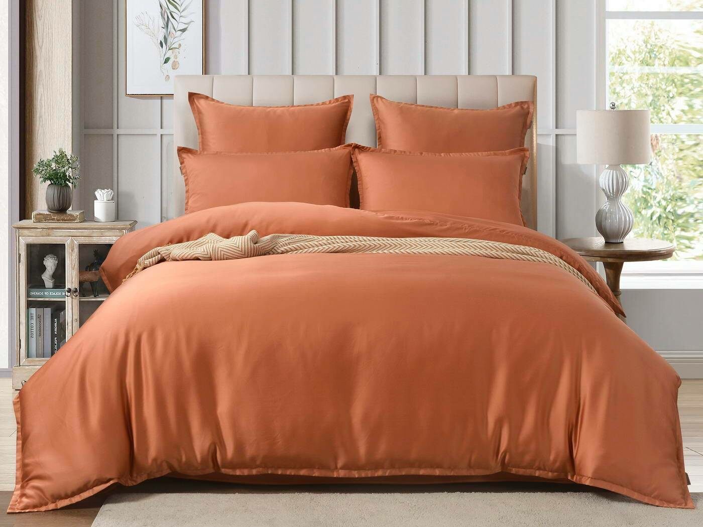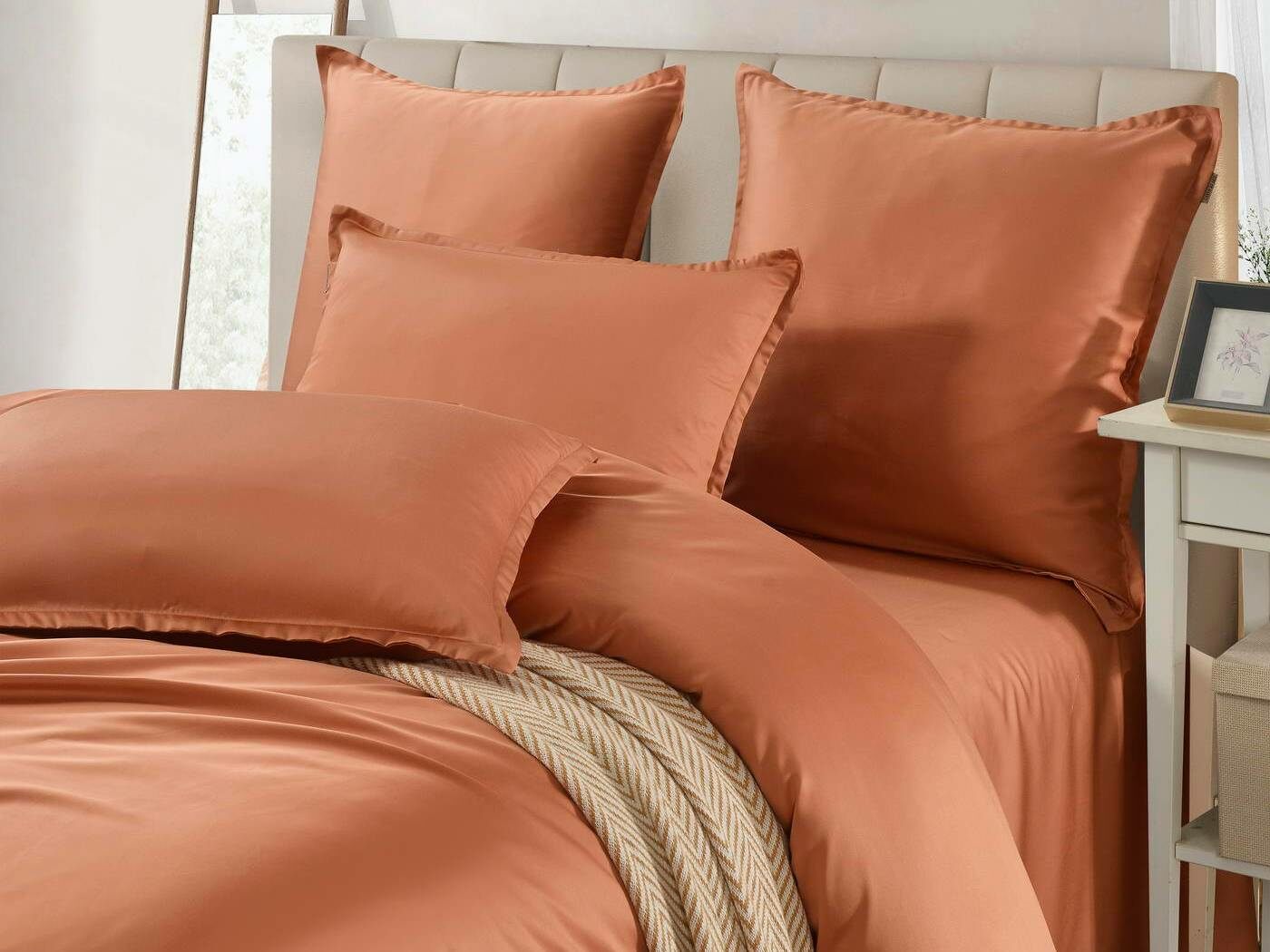Комплекты постельного белья Ансель: нежность и комфорт каждую ночь Ищете постельное бельё, которое подарит вам незабываемый комфорт и уют? Тогда комплекты постельного белья Ансель из тенселя — идеальный выбор! Тенсель — это натуральная ткань, изготовленная из волокон эвкалипта. Она обладает рядом преимуществ перед хлопковыми тканями: более нежная, шелковистая и приятная на ощупь. Комплекты постельного белья Ансель включают в себя наволочки, простыню и пододеяльник. Они выполнены из 100% тенселя, что гарантирует высокое качество и долговечность. Одно из главных преимуществ тенселя — его способность пропускать воздух и хорошо впитывать и испарять влагу. Это обеспечивает оптимальный микроклимат во время сна, предотвращает появление неприятных запахов и бактерий. Ещё одно важное свойство тенселя — антибактериальный эффект. Это значит, что постельное бельё Ансель не вызывает аллергии и подходит для людей с чувствительной кожей. Уникальное свойство тенселя — климат-контроль. При высокой температуре в помещении ткань обладает лёгким и приятным охлаждающим эффектом, а при низкой создаёт ощущение тепла и комфорта. Комплекты постельного белья Ансель — это идеальный выбор для тех, кто ценит комфорт, качество и натуральность. Они станут отличным дополнением к вашему интерьеру и подарят вам незабываемые ощущения во время сна.