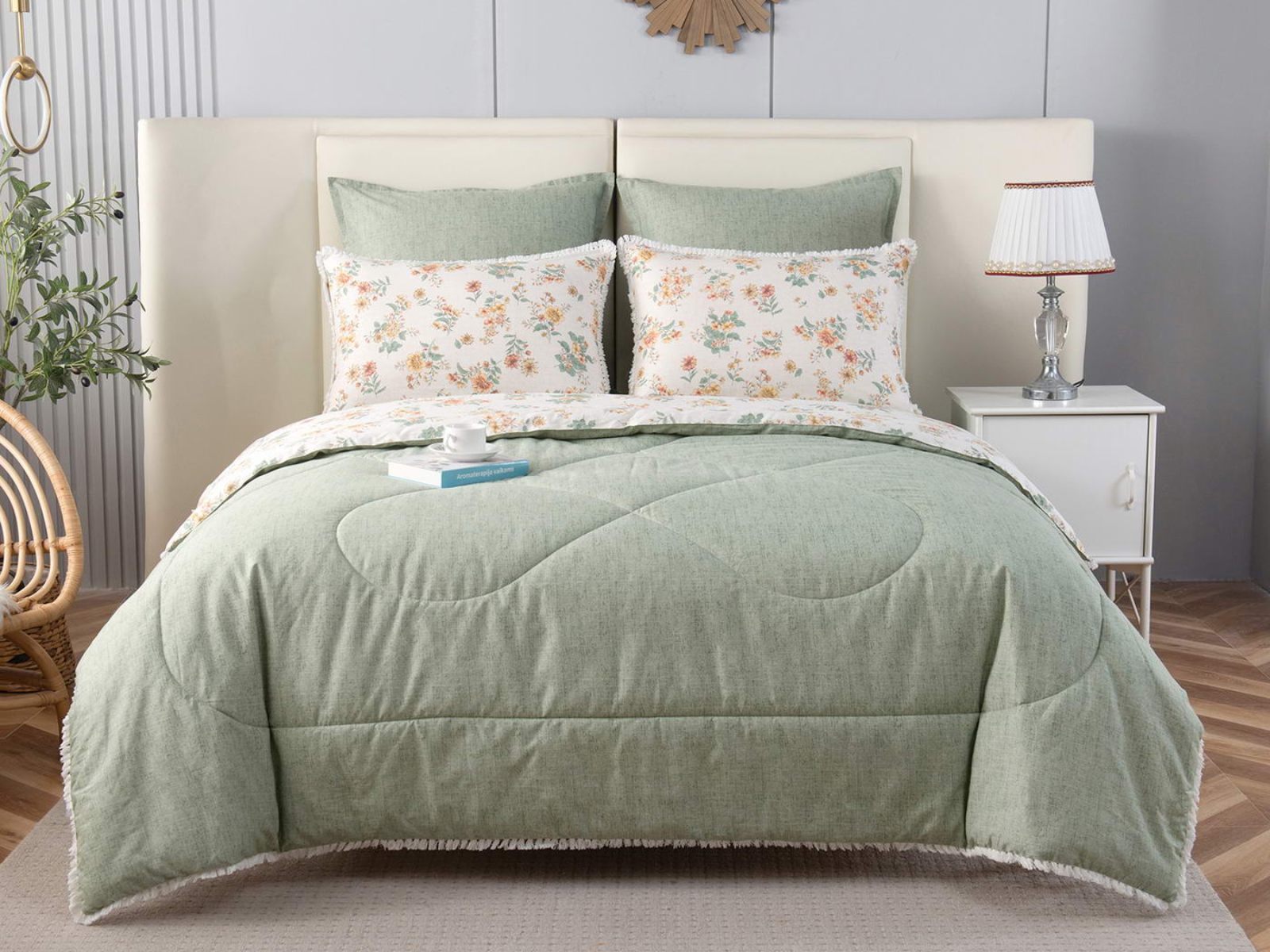 В комплекты комфортеров с одеялом Бернадетт входят наволочки, простыня и легкое всесезонное одеяло. Оцените это современное и очень удобное решение, которое идеально подходит тем, кто не любит возиться с пододеяльниками.