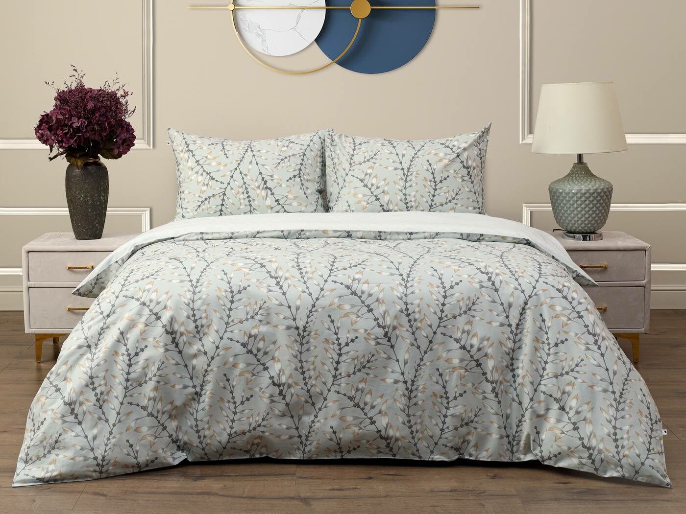 Комплект Мэгги легко стирается в обычной машине в бережном режиме и также легко гладится.