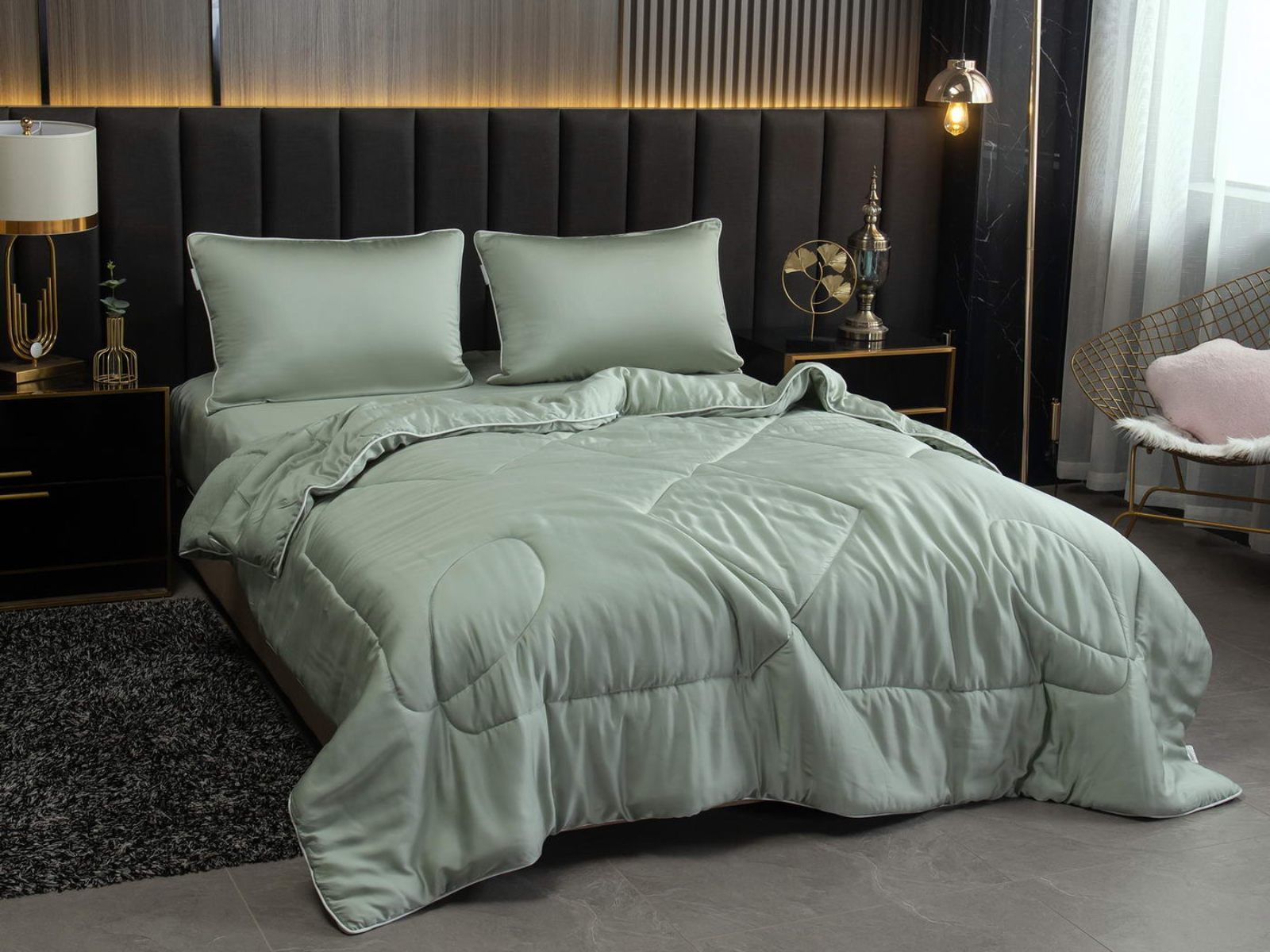 Палитра однотонных комплектов с одеялом Рафаэль – это десять актуальных оттенков. Комплект постельного белья оформлен контрастным кантом на одеяле и наволочках, застегивается на молнию. Одеяло декорировано красивой строчкой, что добавляет изысканности. Комфортеры станут настоящим украшением вашей спальни.