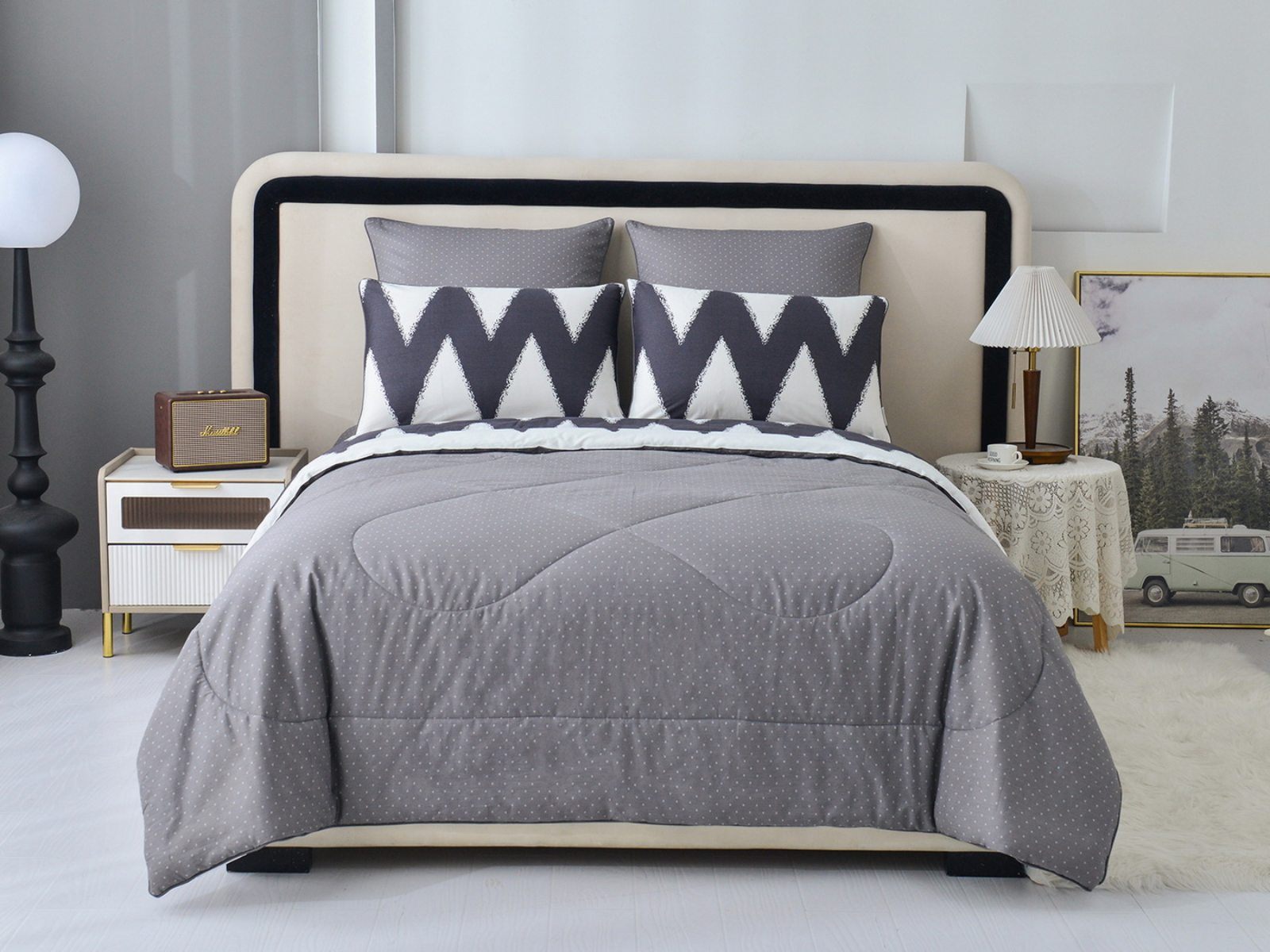 Особенность: двусторонняя модель, наволочки и одеяла декорированы кантом.