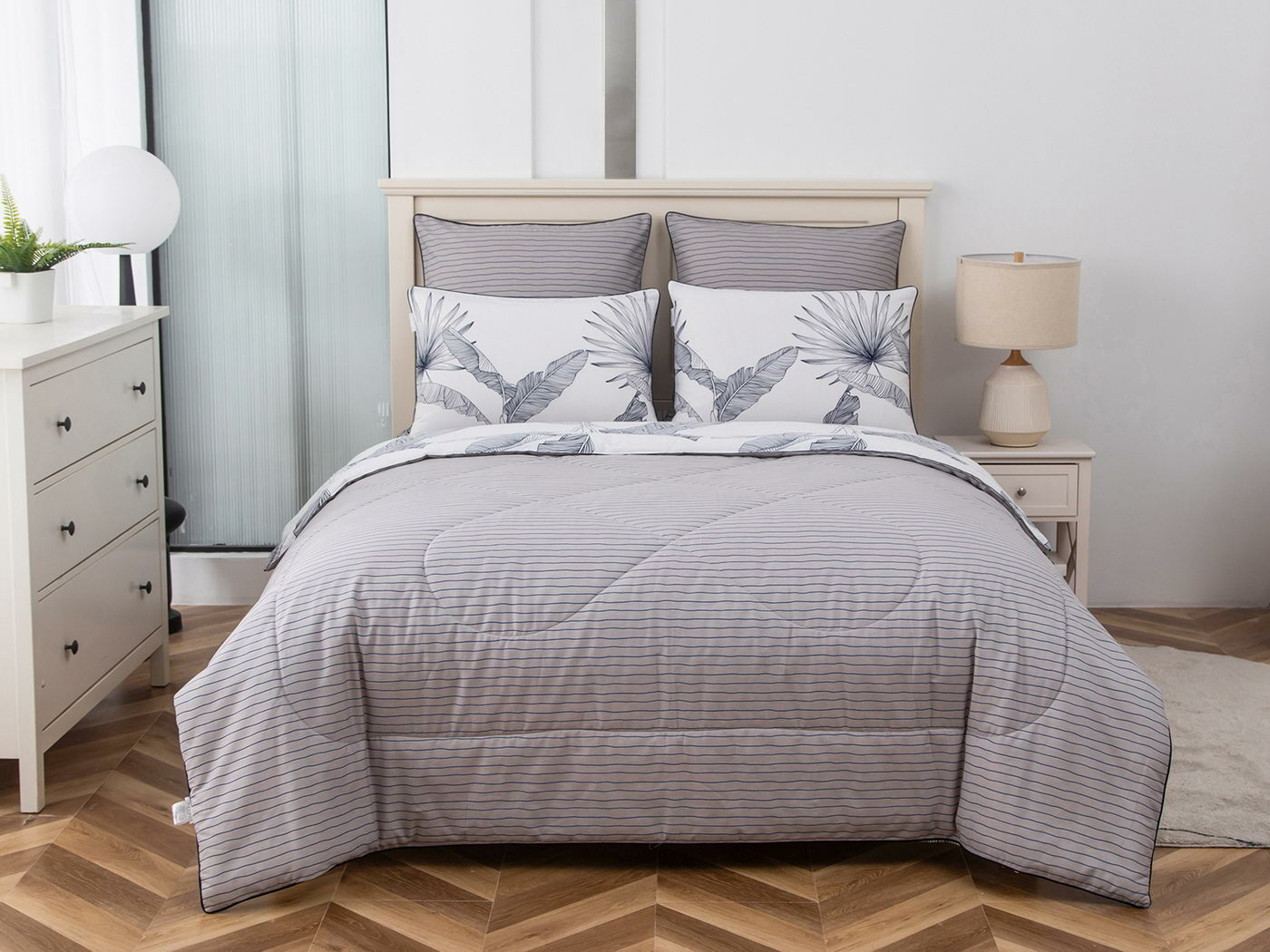 Особенность: двусторонняя модель, наволочки и одеяла декорированы кантом.