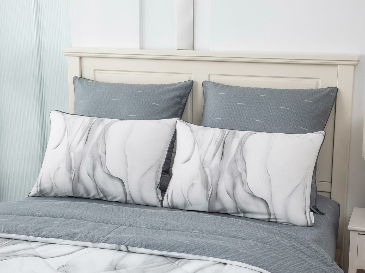 Особенность: двусторонняя модель, наволочки и одеяла декорированы кантом.