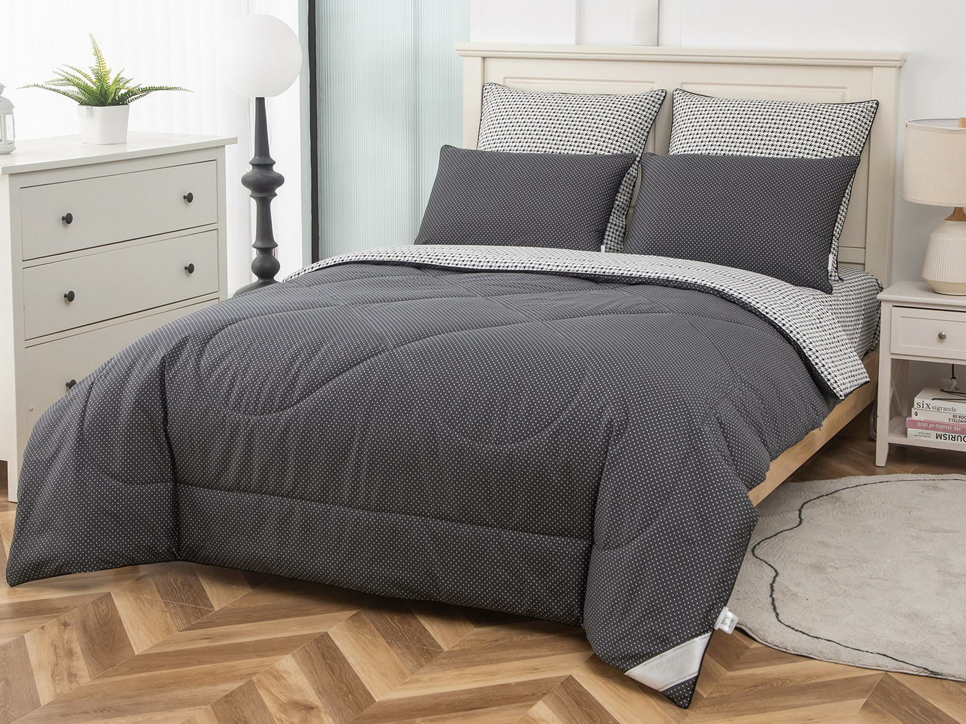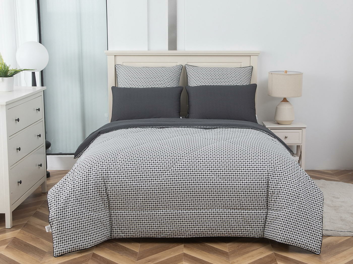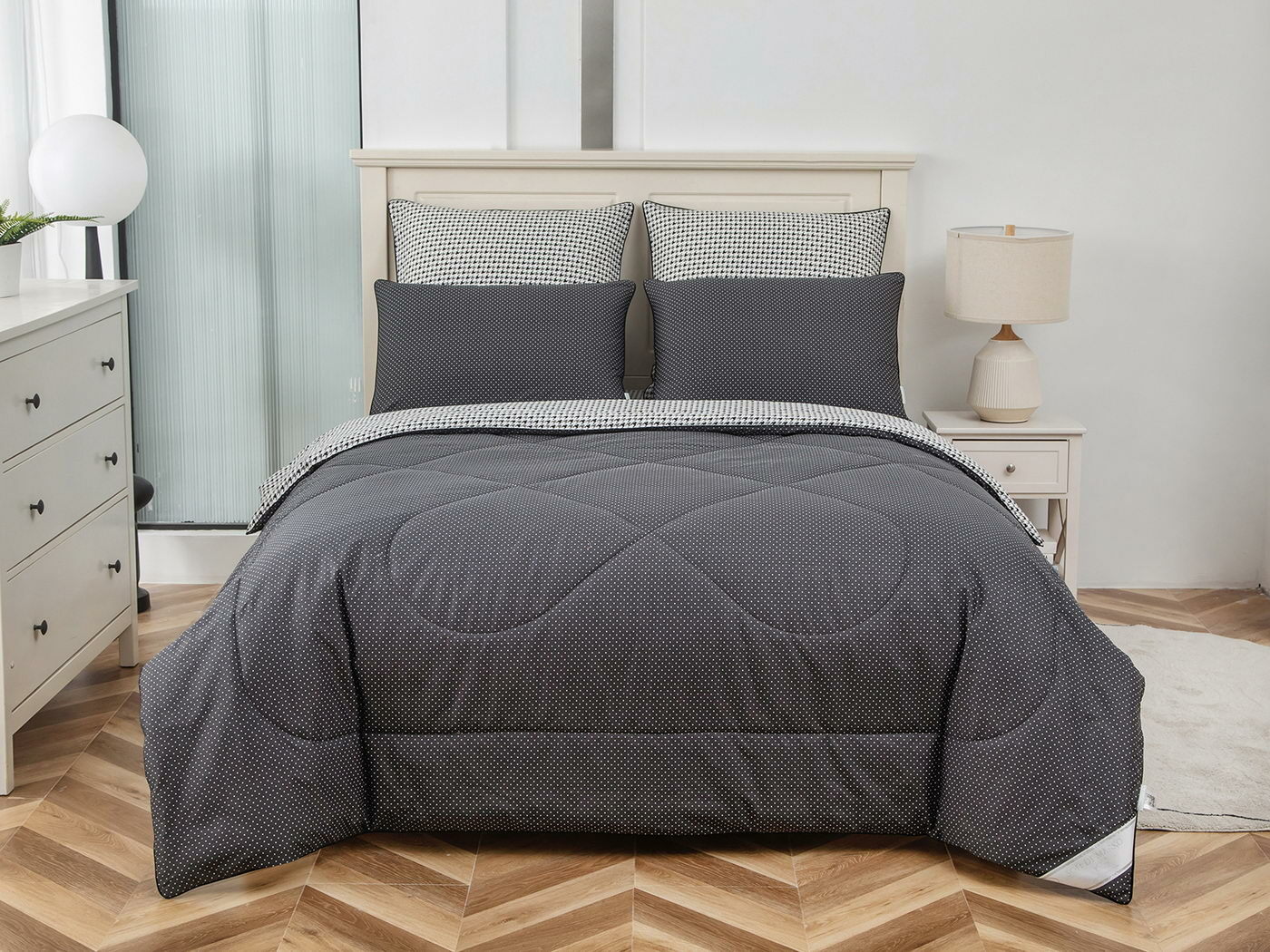 Особенность: двусторонняя модель, наволочки и одеяла декорированы кантом.