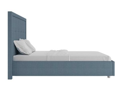 Кровать комплектуется металлическим основанием с подъемным механизмом, под которым находится вместительный бельевой ящик для хранения сезонных вещей и постельных принадлежностей.