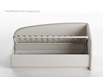 Одним движением руки Вы можете превратить кровать в диван! Закажите вместе с кроватью декоративный чехол на матрас к кровати Amelia из мебельной ткани (чехол приобретается отдельно, стоимость уточняйте у наших менеджеров), уберите постельное бельё в просторный ящик и вуаля — перед вами удобный и компактный угловой диван (особенно актуально для детских комнат или гостиных).
