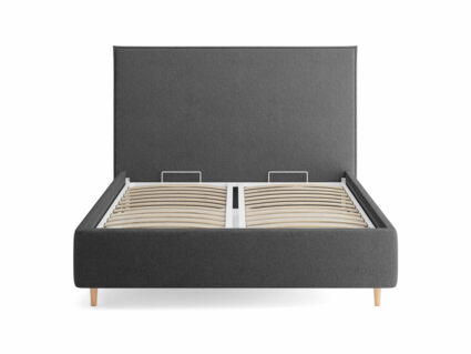 Кровать комплектуется металлическим основанием и подъемным механизмом со вместительным бельевым ящиком. Дно бельевого ящика легко сдвигается для обеспечения уборки под кроватью.