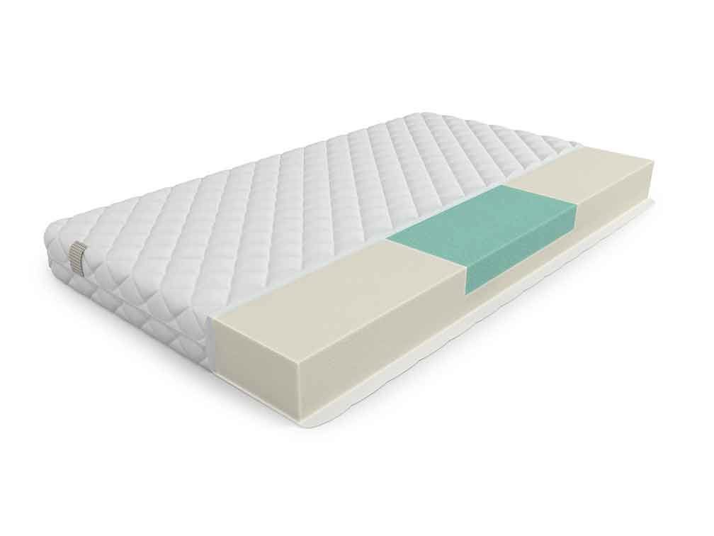 В пенополиуретановых матрасах быстрее продавливается середина. Центральная вставка из плотно сжатой структурированной пены придаёт большую упругость и непроминаемость.