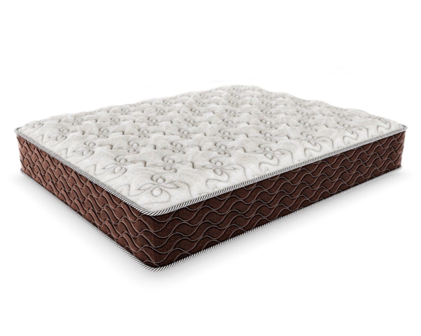 На матрас надет несъёмный чехол. Изделие шьётся из льняного трикотажа с рельефной стёжкой по слою 300 гр холлкона и 0,8 пены. Бурлет изготавливается плотного мебельного жаккарда.
