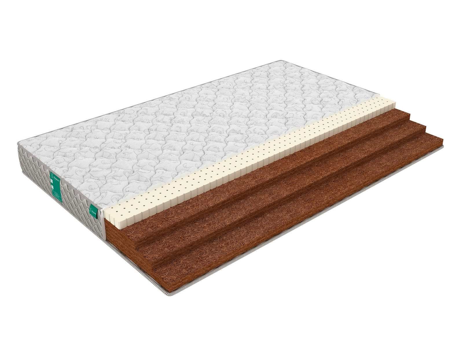С одной стороны матрас представлен только койрой, эта сторона жесткая. Вторая сторона дополнительно проложена слоем натурального латекса и имеет умеренную мягкость. Латекс благодаря своей упругости и эластичности помогает быстро расслабиться и снять напряжение