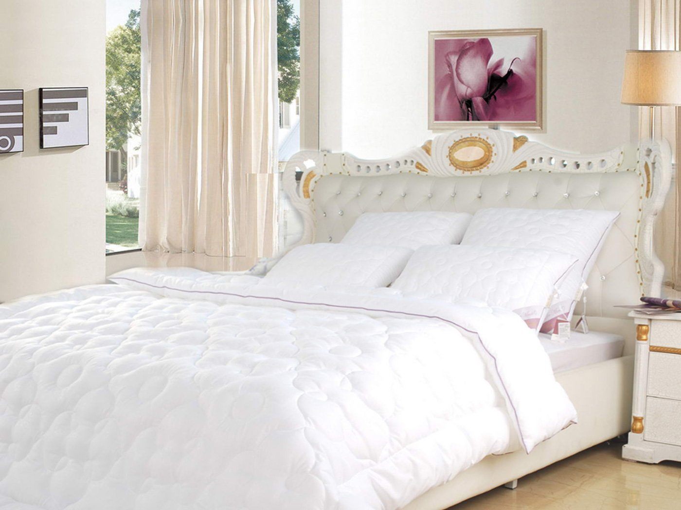 Сочетание хлопка и микроволокна в наполнителе хорошо сохраняет форму, обладают высокой прочность и износоустойчивостью. Такие изделия легкие, способны поддерживать оптимальную температуру во время сна. Экстракт розы, добавленный в состав, обладает расслабляющим действием, снимает усталость и способствует быстрому восстановлению сил.