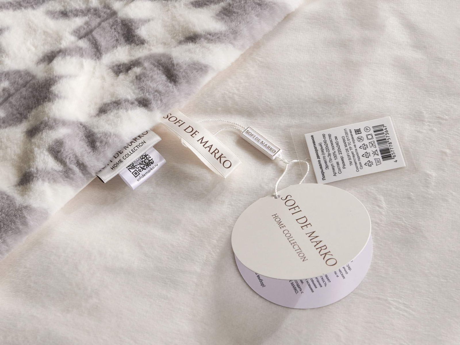 Sofi De Marko представляет вашему вниманию коллекцию Эрнесто, включающую в себя пледы и декоративные наволочки из искусственного меха с принтом «гусиная лапка».
