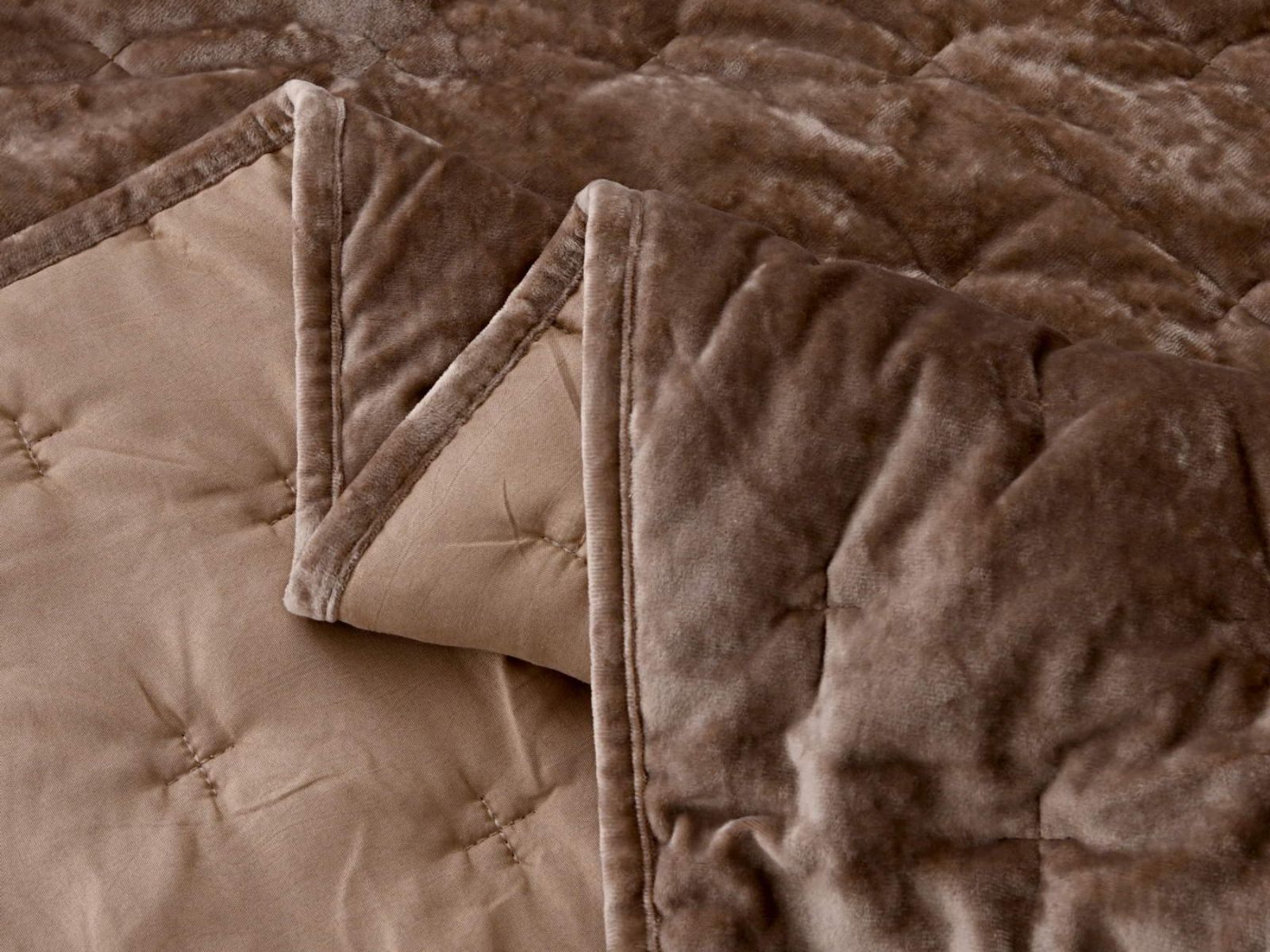 Цветовая гамма разнообразна и включает одиннадцать благородных оттенков: бежевый, горчичный, изумруд, капучино, бордо, молоко, пепел роза, светло серый, стоун, темно синий, терракот. В комплекте с покрывалом идет наволочка из такой же ткани.
