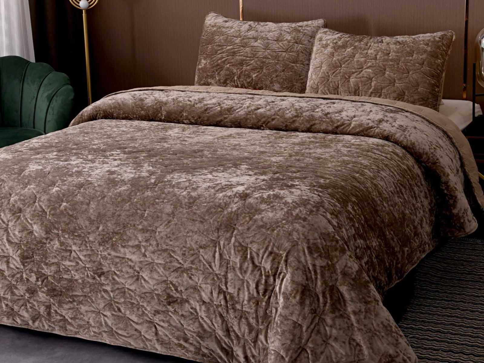 Бархатное покрывало Алира выглядит роскошно и элегантно, оно придаст спальне стильный и изысканный вид. Бархатную ткань начали изготавливать еще в Средние века, её использовали в оформлении дворцов и изготавливали плащи и головные уборы для знати. Теперь и вы можете прикоснуться к этой роскоши! Бархатная текстура приятная на ощупь, а из-за особого плетения ткани, игра света на ней выглядит благородно. Поэтому покрывало Алира создаст необычайно уютную атмосферу в вашей спальне.