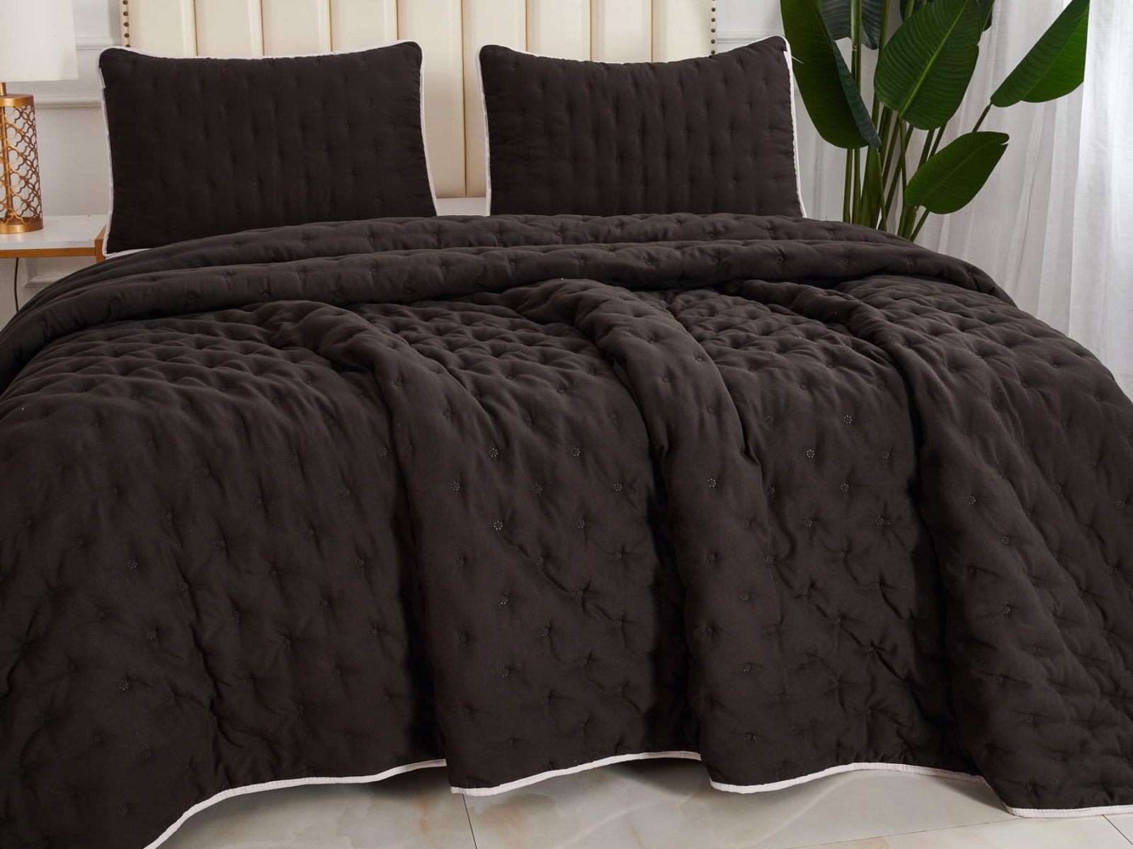 Двусторонние стеганные покрывала Броуди легкие и прочные. В комплект входят покрывало и одна либо две наволочки (50х70 см) из аналогичного материала в зависимости от размера. При желании покрывало можно использовать как легкое одеяло.