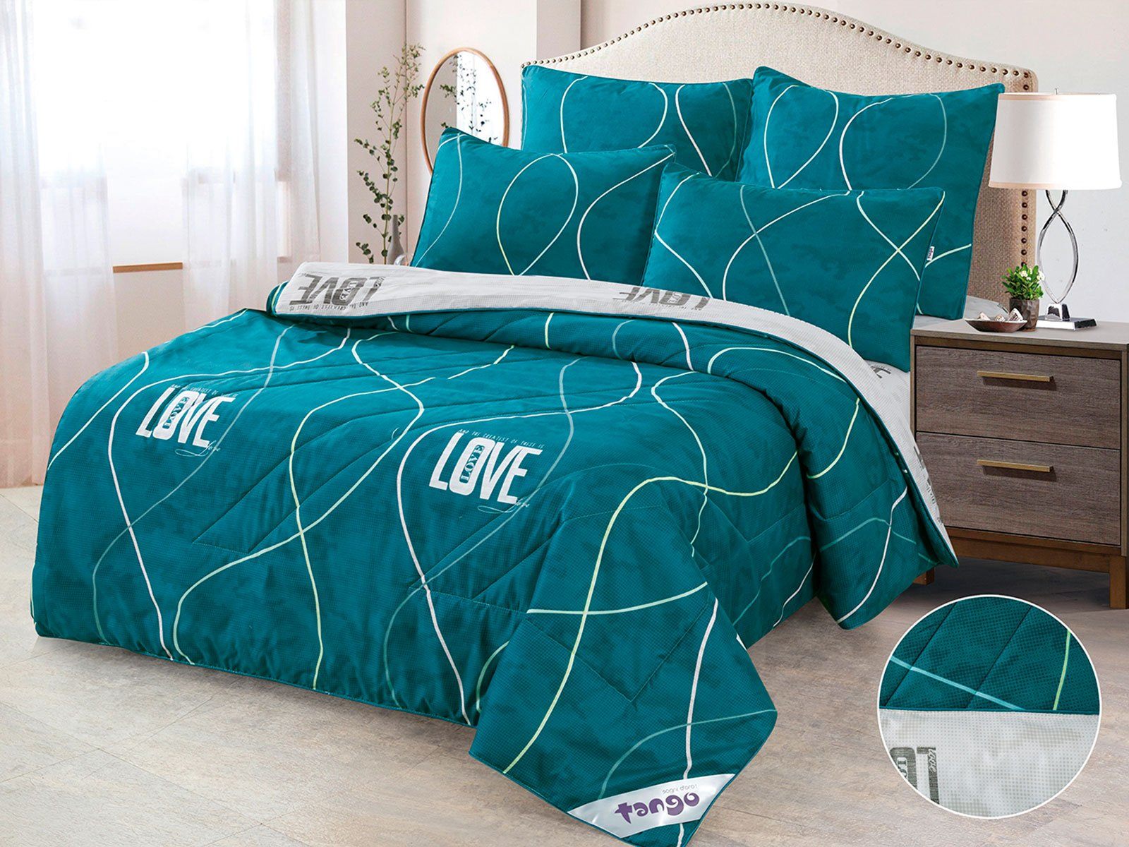 В данный комплект вместо пододеяльника входит облегченное одеяло. Комплект подойдет тем, кто устал от мучительного натягивания пододеяльников на одеяло.