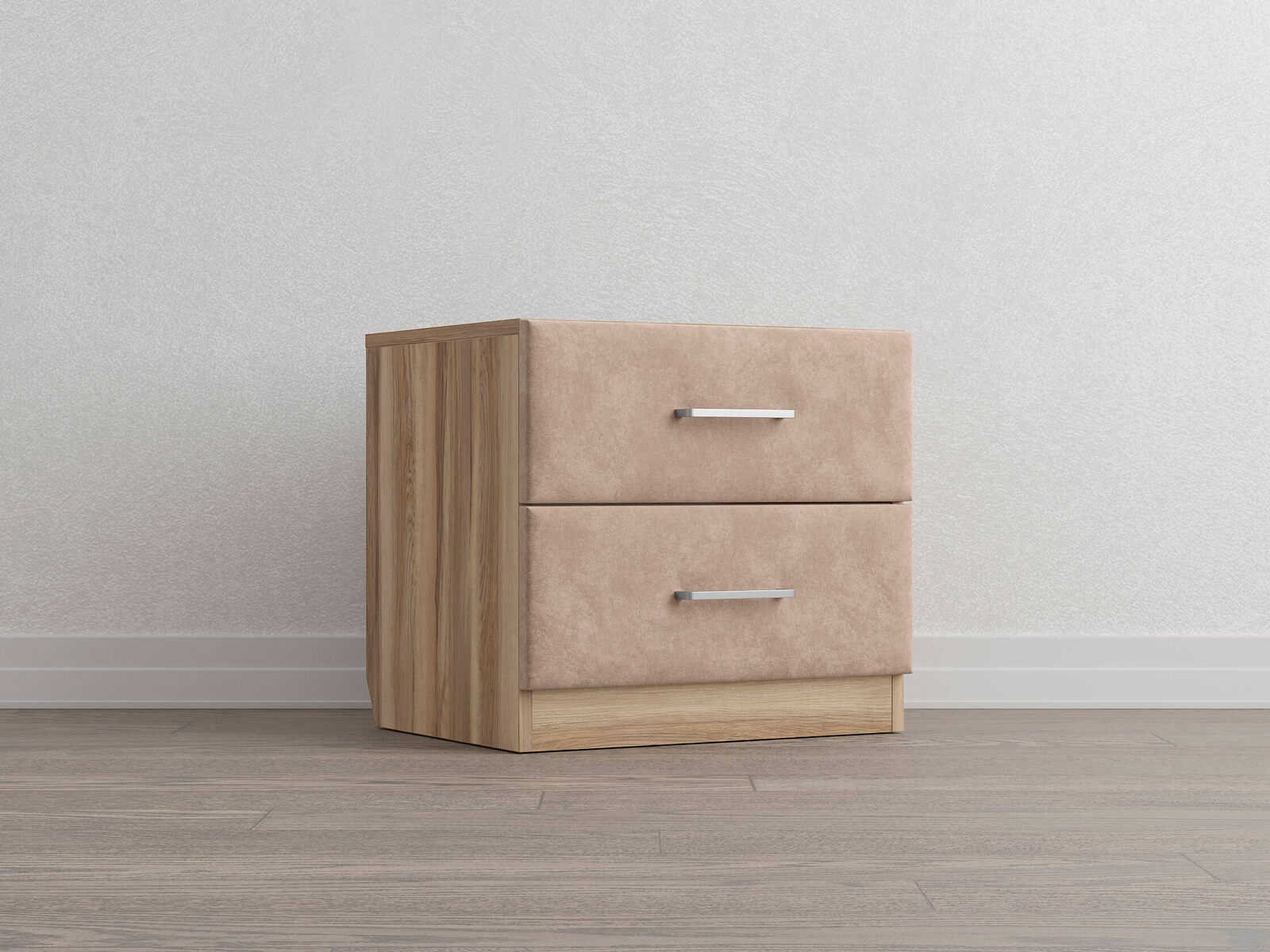 Элегантная комбинированная тумба, сочетающая в себе лаконичность ЛДСП и уют мягких фасадов ящиков, обтянутых тканью. Конструкция тумбы предусматривает два вместительных выдвижных ящика с направляющими скрытого монтажа и доводчиками. Корпус из ЛДСП гарантирует долговечность и устойчивость к механическим повреждениям, а мягкие фасады в ткани и изящные металлические ручки добавят уют. Большое разнообразие текстур и цветовых решений для гармоничной интеграции в любой интерьер.